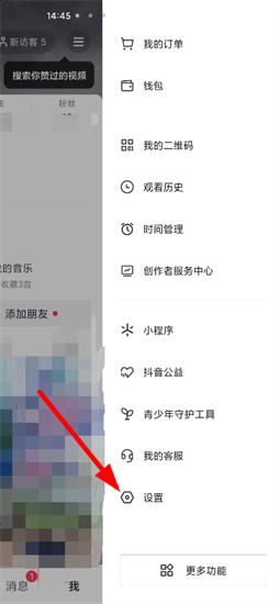 2、我们在右侧弹出来的选项之中找到设置,然后点击进入。